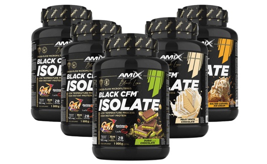 AmixTM Black CFM® Isolate je srvátkový proteínový izolát prémiovej kvality obohatený o probiotiká (LactosporeTM) a enzýmový komplex Digezyme®. dodáva celé spektrum aminokyselín, ktoré sa prirodzene nachádzajú v srvátkových bielkovinách, vrátane najvyššej koncentrácie BCAA, ako aj ďalších esenciálnych amínov. Bielkoviny prispievajú k rastu svalovej hmoty na jej udržanie.
