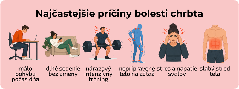 Bolesť chrbta nie je len o zlej technike alebo „zlom pohybe“. Vo väčšine prípadov ide o kombináciu nedostatku pohybu, nepripravenosti tela a celkového životného štýlu.