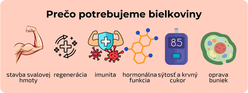Bielkoviny potrebujeme na regeneráciu svalovej hmoty, poškodenej intenzívnym tréningom, a na dodanie potrebného množstva aminokyselín nevyhnutných na tvorbu bielkovín, ktoré podporujú rast svalov.