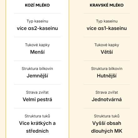 V porovnaní s kravským mliekom tvorí kozia bielkovina jemnejšiu micelárnu štruktúru, čo vedie k lepšej vstrebateľnosti a plynulejšiemu tráveniu. Pestrejšie zloženie bioaktívnych zložiek a čistá chuť bez denaturačných zásahov z nej robia skutočnú špičku medzi mliečnymi bielkovinami.