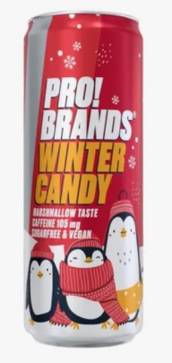 Příchuť Winter Candy: Voda, oxid uhličitý, mléčnan vápenatý, kyselina: kyselina citrónová; L-leucin, L-isoleucin, L-valin, kofein (0,055%), stabilizátor, barvivo: karamel, vitamín C, kyselina pantothenová, vitamín B6, biotin, vitamín B12, sladidlo (sukralóza),