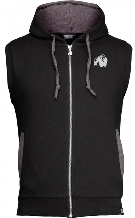 Táto mikina Gorilla Wear bez rukávov s kapucňou a predným vreckom na zips umožňuje užívateľovi optimálny pohyb a poskytuje dostatočné krytie, ktoré chráni pred chladom.