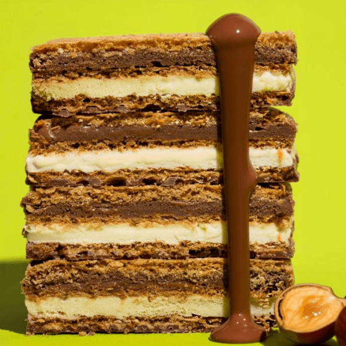 ✅ 3 vrstvy chrumkavej oplátky + krémová náplň