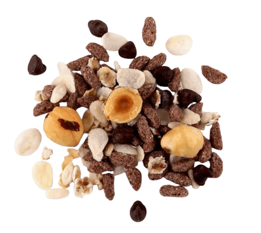 Každé sústo vonia pravou horkou čokoládou, ktorú dopĺňajú pražené lieskové oriešky a chrumkavé ryžové koláčiky. Aby to bolo ešte lepšie, pridali sme aj pohánkové lupienky a kakaové ryžové lupienky, ktoré zmesi dodávajú lahodnú štruktúru a prirodzenú sladkosť. Výsledkom je harmonické müsli plné kontrastov - chrumkavé, čokoládové a zároveň ľahké.