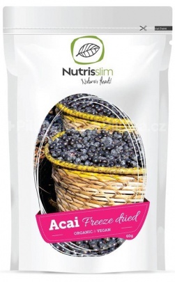 Prášek z plodů Acai neboli Euterpe brazilské, palmy rostoucí v brazilském deštném pralese a na pacifickém pobřeží Kolumbie.
