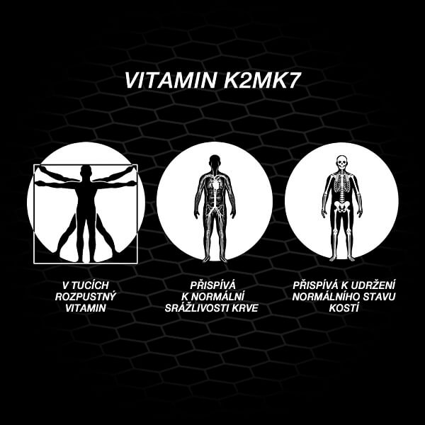 Vitamín D3 sa v literatúre často spomína v súvislosti so vstrebávaním vápnika, zatiaľ čo vitamín K2 (MK-7) sa spomína v súvislosti s jeho prirodzenou distribúciou v tele, t. j. kontrolou smeru, kde sa vápnik ukladá. D3 pomáha vápniku vstrebávať sa - K2 ho pomáha nasmerovať na správne miesto. Preto sa v praxi často odporúča skôr kombinácia týchto dvoch látok ako ich izolácia. Použitá forma vitamínu K2 MK-7 pochádza z prírodnej fermentácie.