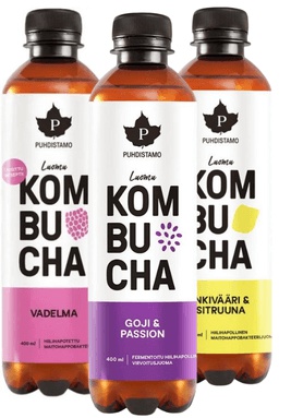 Zloženie - malinová príchuť: prírodná minerálna voda, organický trstinový cukor, organická kombuchová kultúra, oxid uhličitý, malinová aróma, organický zelený čaj, extrakt z organickej čiernej mrkvy, prírodná jablková aróma, prírodná aróma čiernych ríbezlí.