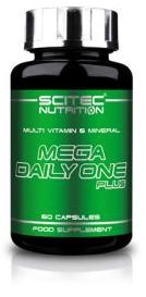 Mega Daily One Plus je silná, kompletní směs multivitaminů a minerálních látek, navržená pro každodenní použití. Obsahuje velké množství vitaminu A a vitaminů B. V malém množství zabezpečí i tzv. lipotropní látky, které hrají důležitou úlohu v tuk spalujících procesech organismu. V produktu se nacházejí také důležité rostlinné výtažky, jako např. rutin, hesperidin a citrusové bioflavonoidy. Hesperidin napomáhá snižovat hladinu cholesterolu a krevní tlak, má slabý protizánětlivý a silný antioxidační účinek. Rutin minimalizuje nebezpečí přilnutí krevních destiček, posilňuje stěny kapilárních cév a působí protizánětlivě. Citrusové bioflavonoidy podporují přísun vitamínu C do buněk, mají slabý antialergenní a protizánětlivý účinek.
