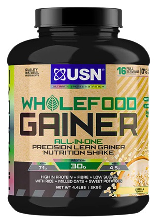 Šejk s vysokým obsahom bielkovín určený na zvýšenie fyzickej výkonnosti. Wholefood Gainer je prášok s vysokým obsahom bielkovín a vlákniny na budovanie svalov, ktorý neobsahuje mliečne výrobky a sóju. Prášok je vytvorený tak, aby každý proteínový kokteil napomáhal fyzickému výkonu počas po sebe nasledujúcich krátkych sérií vysoko intenzívneho cvičenia. Neobsahuje laktózu. Vhodný pre vegetariánov a vegánov.
