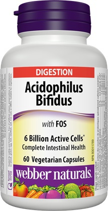 Produkt Acidophilus Bifidus obsahuje 3 druhy laktobacilů pro péči o tenké střevo a 1 druh bifidobakterií pro tlusté střevo. Jedna kapsle obsahuje 6 miliard aktivních buněk. Obsahuje FOS (fruktooligosacharidy) - přírodní cukry, které pomáhají životnosti bakterií v trávicím traktu. Není potřeba chlazení. Snadno polykatelné kapsle.
